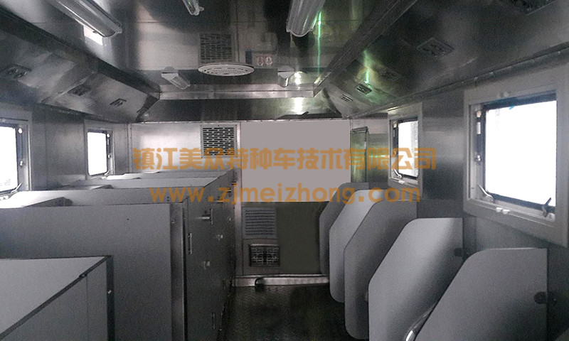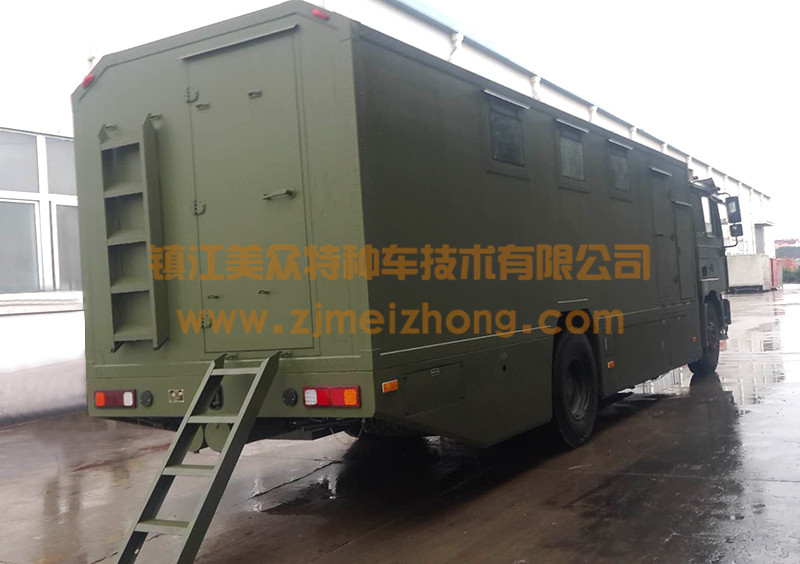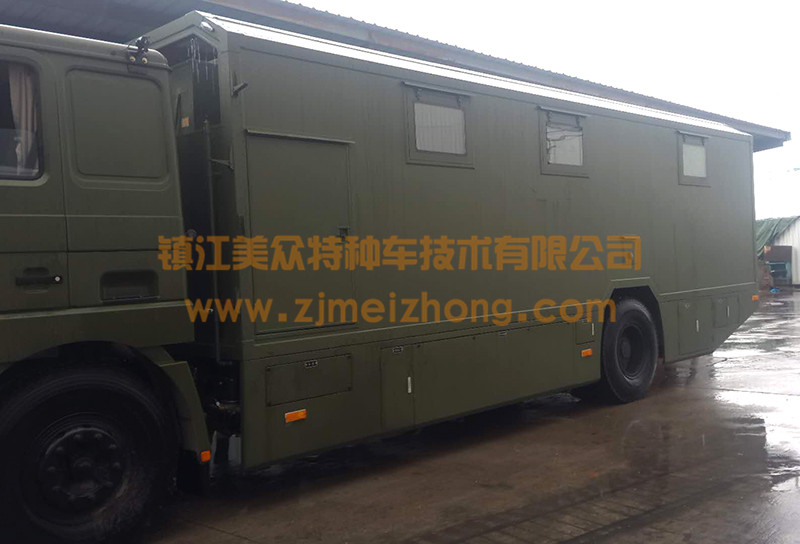 生活保障車上設置了電氣裝置(移動電源)、空調裝置、供水裝置、照明裝置、影視裝置、能夠適應高溫或低溫惡劣環境,適應在野外無補給依托情況下從事軍事、勘探、科技試驗的生存環境。